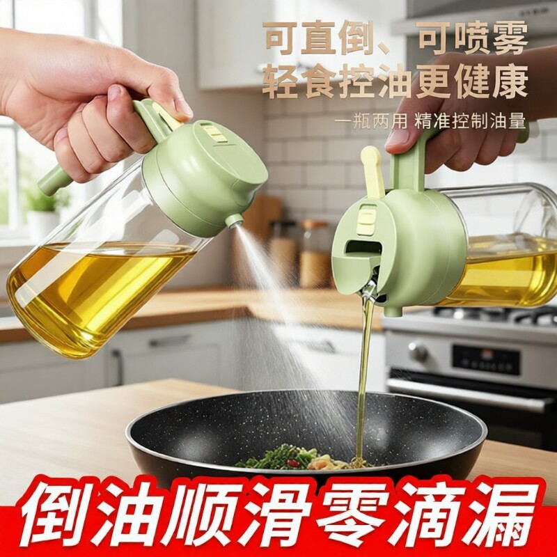 スプレー注ぎの二重用途ガラス油ケトルオイルスプレーポットは、油をぶら下げない、漏れ防止オイル、醤油酢調味料瓶939