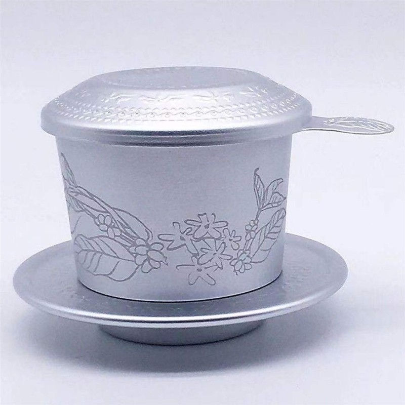 ベトナムのスペシャルドリップコーヒーポット、ステンレススチール、純アルミニウムがPhin Pha Cafe Nhap Khauで入手可能です