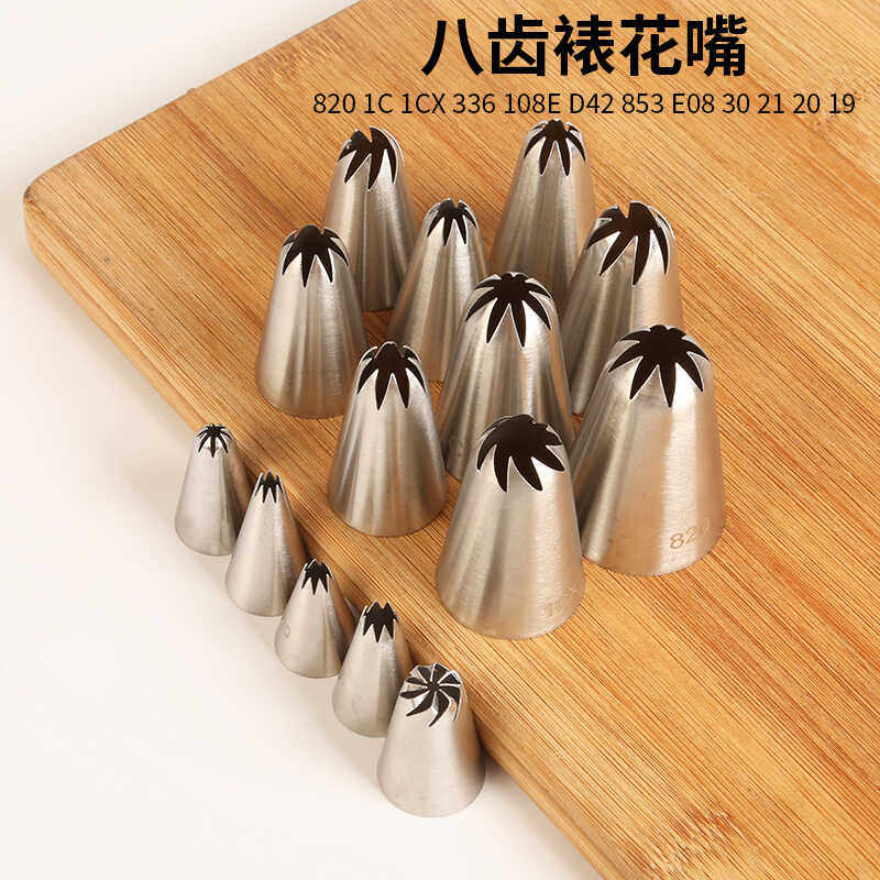 小中サイズのクリームクッキーパイピングスポウト 6歯、8歯、10歯、12歯、15歯、ステンレス製配管スポウト スクイーズスポウト