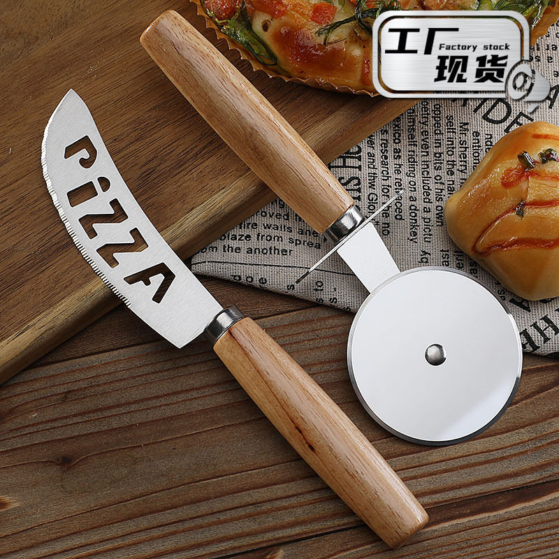 オークハンドルのトゥースナイフ、チーズナイフ、ピザカッター、ローラーカッター、ステンレス製ビスクイター、ピザホイールナイフ、ベーキングツールセット