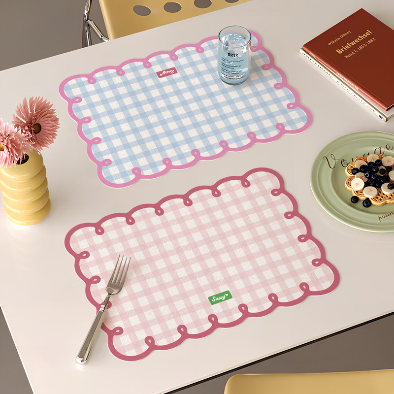 レトロチェック柄、防水・油分、使い捨て、INSスタイル、断熱マット、キッチン食器、箸、カウンタートップ、PVCレザー、ダイニングテーブルマット