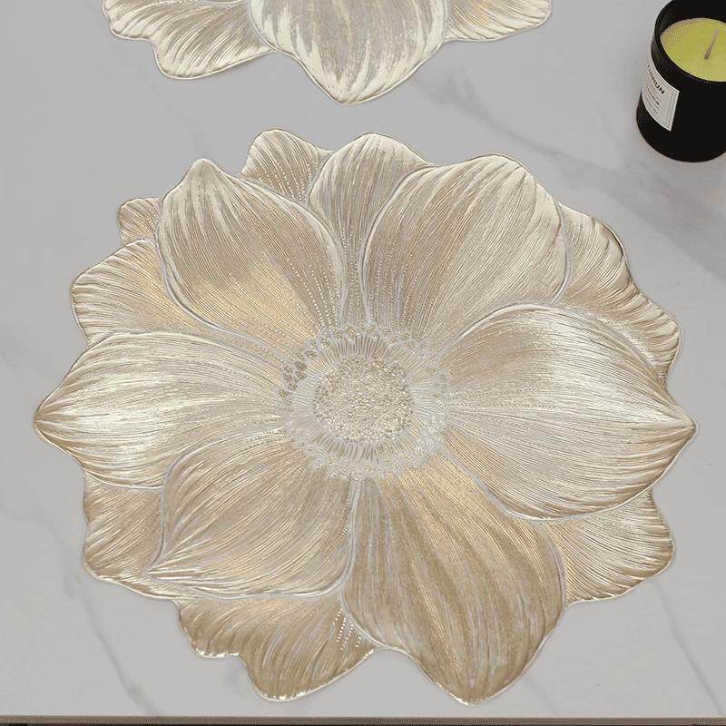 フラワーノルディックスタイルクリエイティブな滑り止めマット、装飾マット、PVC耐熱断熱マット、プレミアムロータス、防水・防水オイル対応のランチョンマット