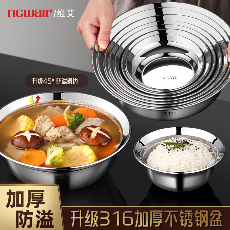 Viai 316 食品グレードのステンレス製洗面器セット、炊き入れ、炊き入れ、炊き台、家庭用、野菜洗面器、焼き卵