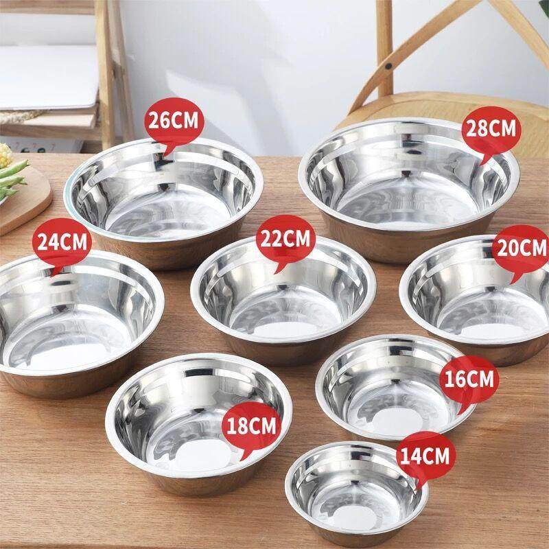 304 食品グレードのステンレス製洗面器、野菜の排水と麺のこね、家庭用キッチン、焼き菓子、冷たいサラダボウル