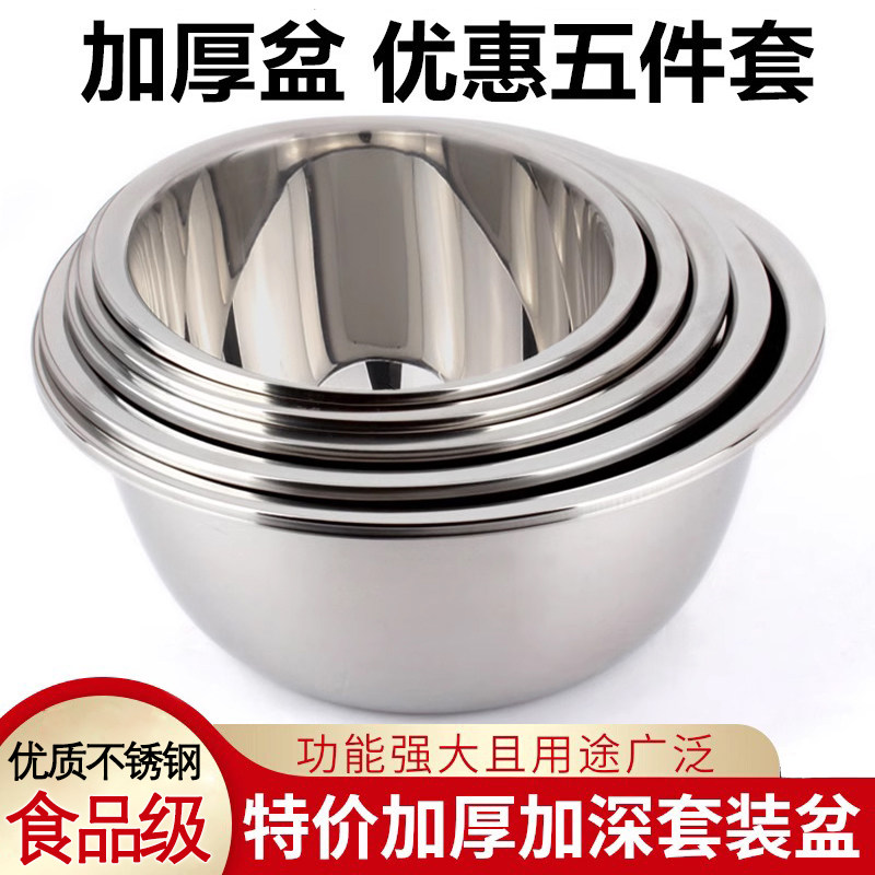 ステンレス製の洗面器 家庭用キッチン 卵洗い 深め調理用洗面器 洗面器 混ぜ盆 刺繍なしの鉄製洗面器 5ピースセット