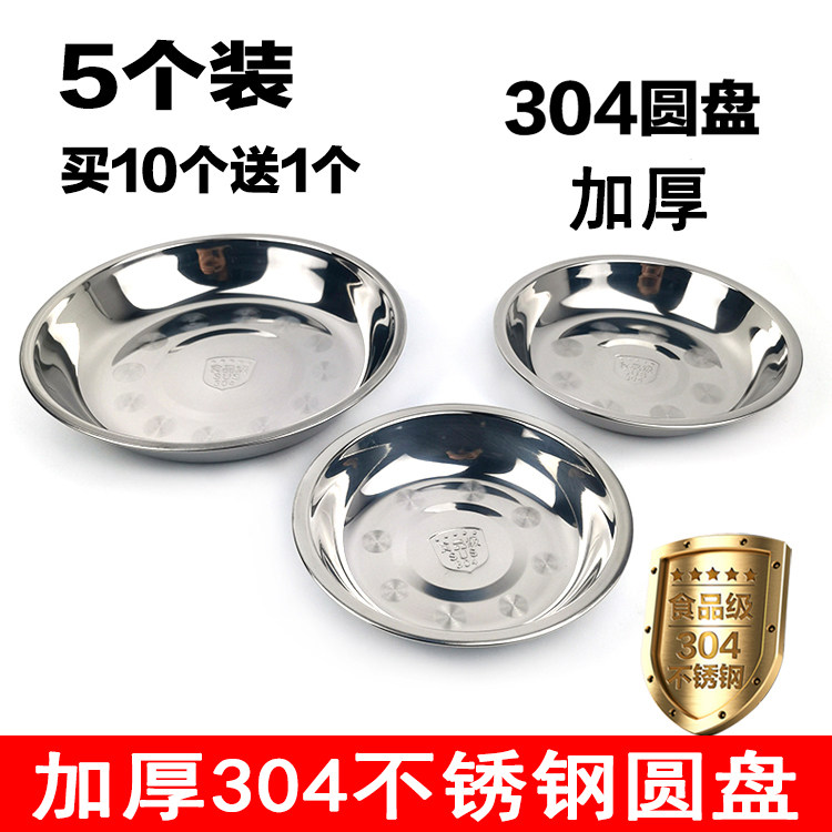 304個のステンレス製皿、厚みのある丸皿、野菜皿、家庭料理、食堂の食器、平皿、バーベキュー皿、果物皿