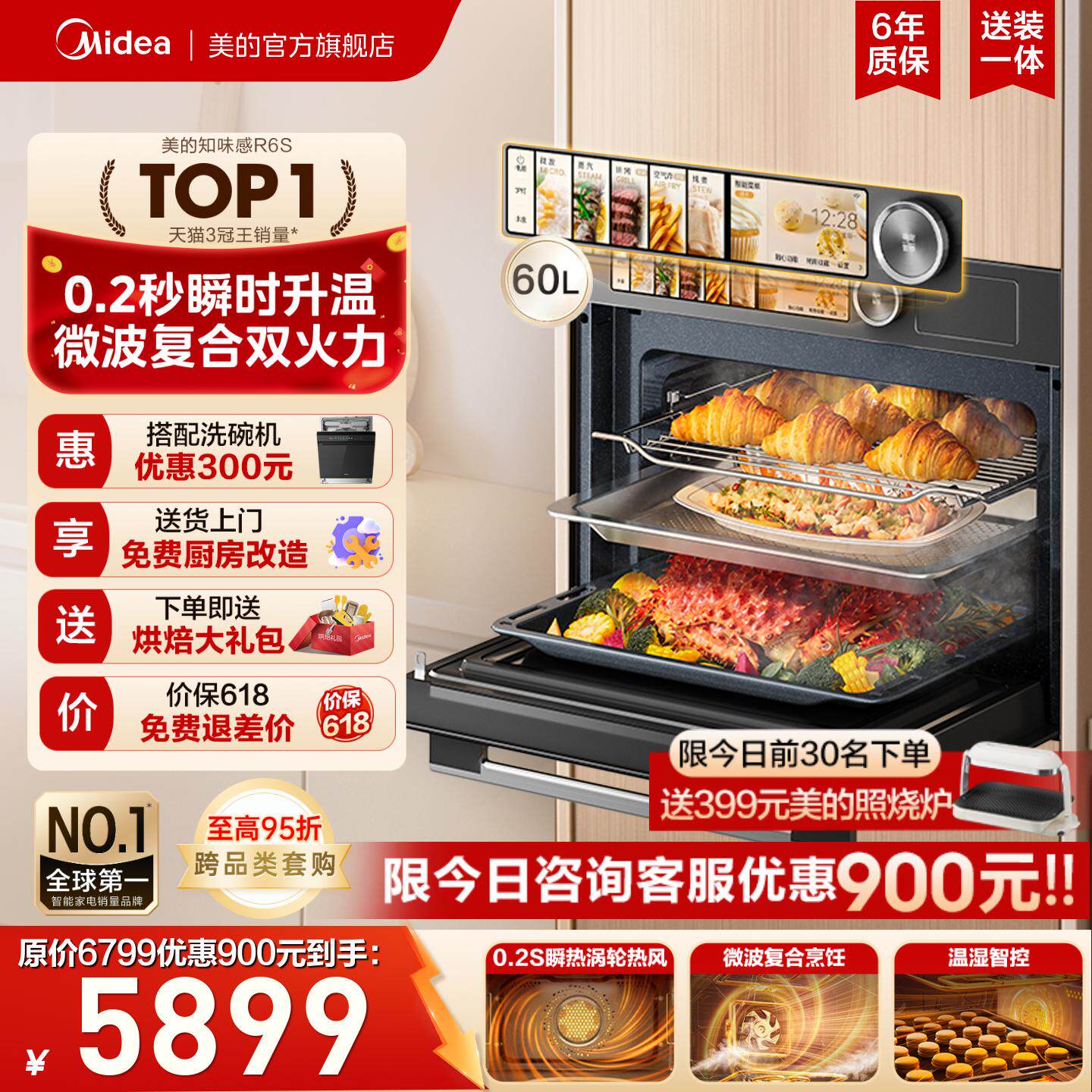 【フラッグシップ爆薬モデル】ミデジーウェイR6S マイクロスチーム&ベーキングオールインワンマシン 内蔵家庭用スチームオーブン 電子レンジ