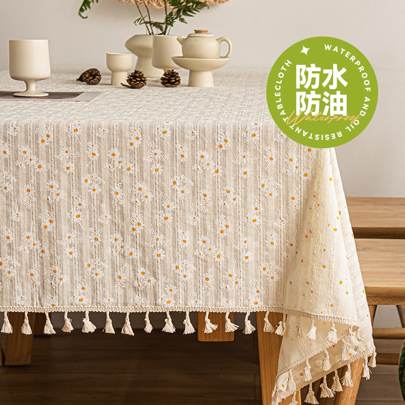 綿と麻のテーブルクロス、防水・オイルプルーフ、使い捨て生地、軽やかな贅沢、高級長方形コーヒーテーブルクロス、2026年新型ダイニングテーブル