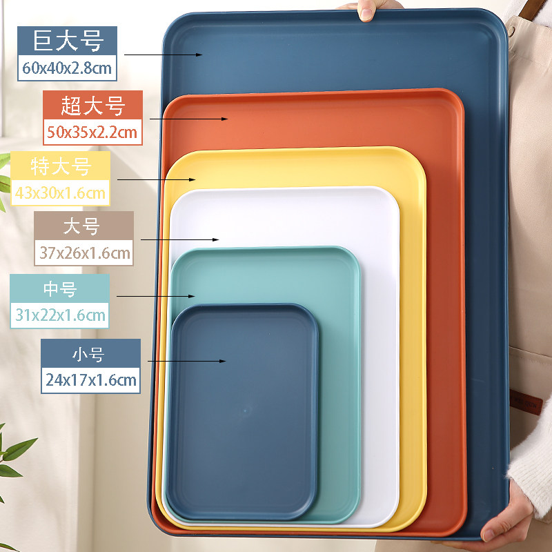 食品グレードのプラスチック製巨大四角い皿、厚みを増した長方形トレイ、サービングプレート、ファストフード皿、家庭用排水トレイ