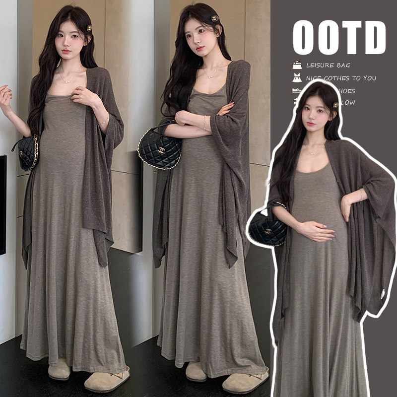 妊婦用春夏の衣装セット2026年、妊婦向けの新しいラジースタイルカーディガンジャケットキャミソールドレス