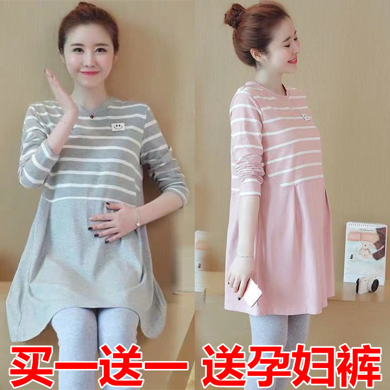 マタニティセット秋のミッドレングスインターネットセレブのゆったりしたプラスサイズドレストップTシャツのツーピースアウターマタニティ衣装