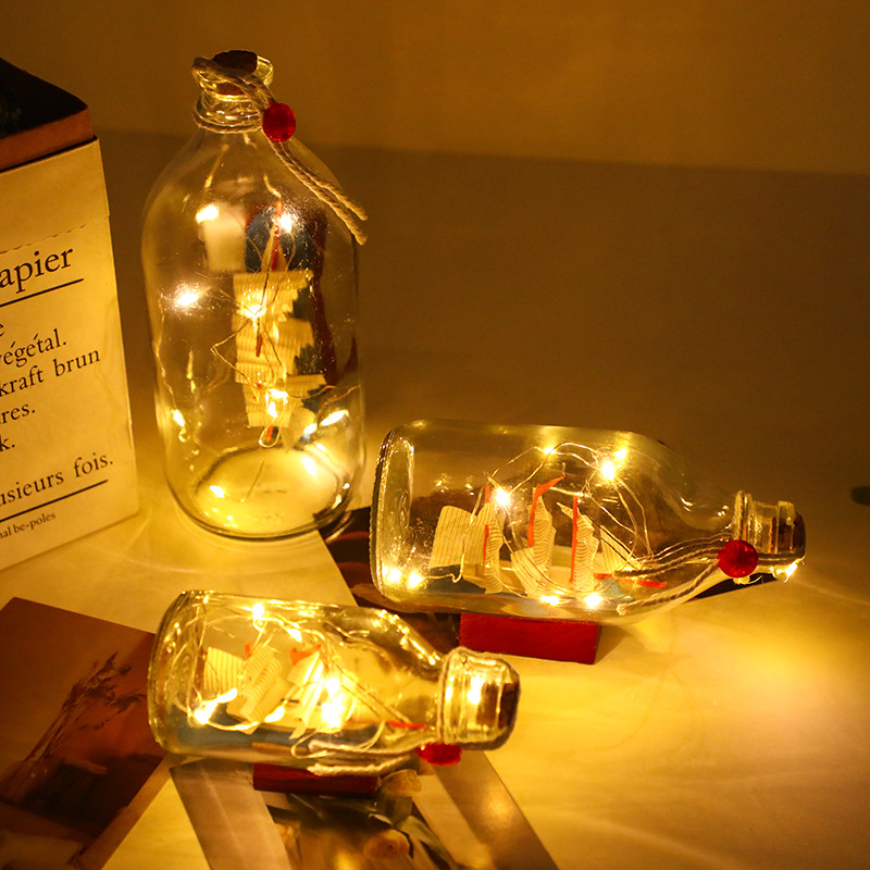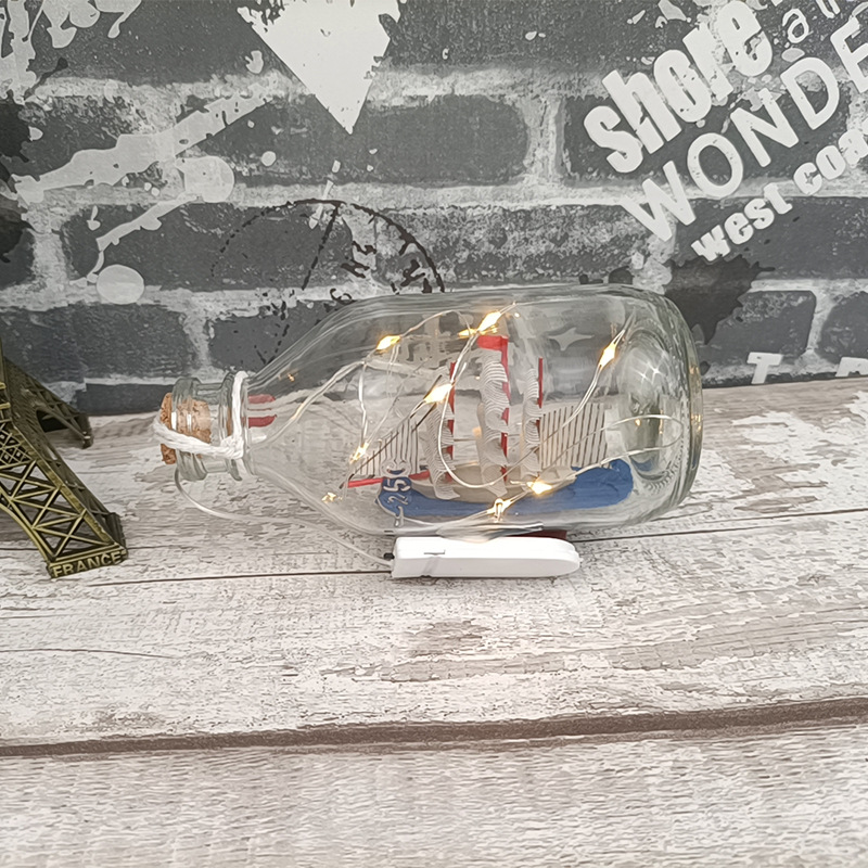 ボトルの中のボート、ドリフトボトル、LEDライト、ガラスのセイルボート、スムーズな帆走、クラフトボート、インテリア、ビジネス、子供向けギフト