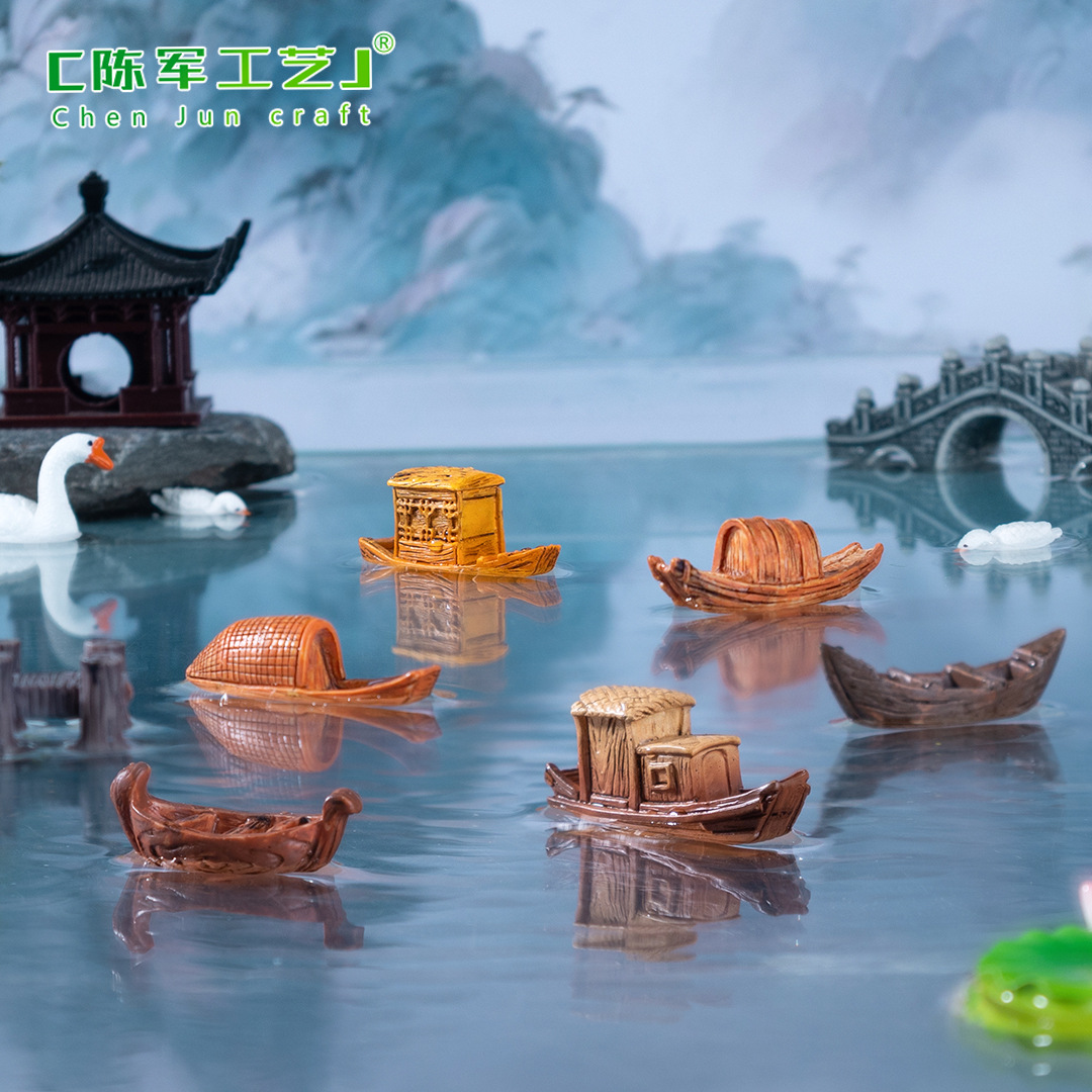 マイクロランドスケープレトロ江南水町クルーズ漁船モデルDIY装飾アクセサリーエコロジカルボトル造園ガジェット