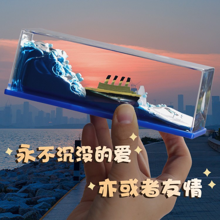 タイタニック流体ドリフトボトル、コンピューターデスクオーナメント、高級ニッチボトル船の装飾、卒業ギフト