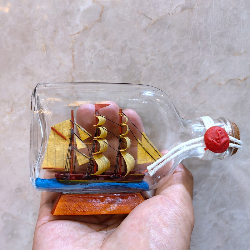 地中海のボトル・イン・ア・ボトル セイルボート ガラス ヨット ボトルボート 願い船 漂流ボトル 創造的なオーナメント A