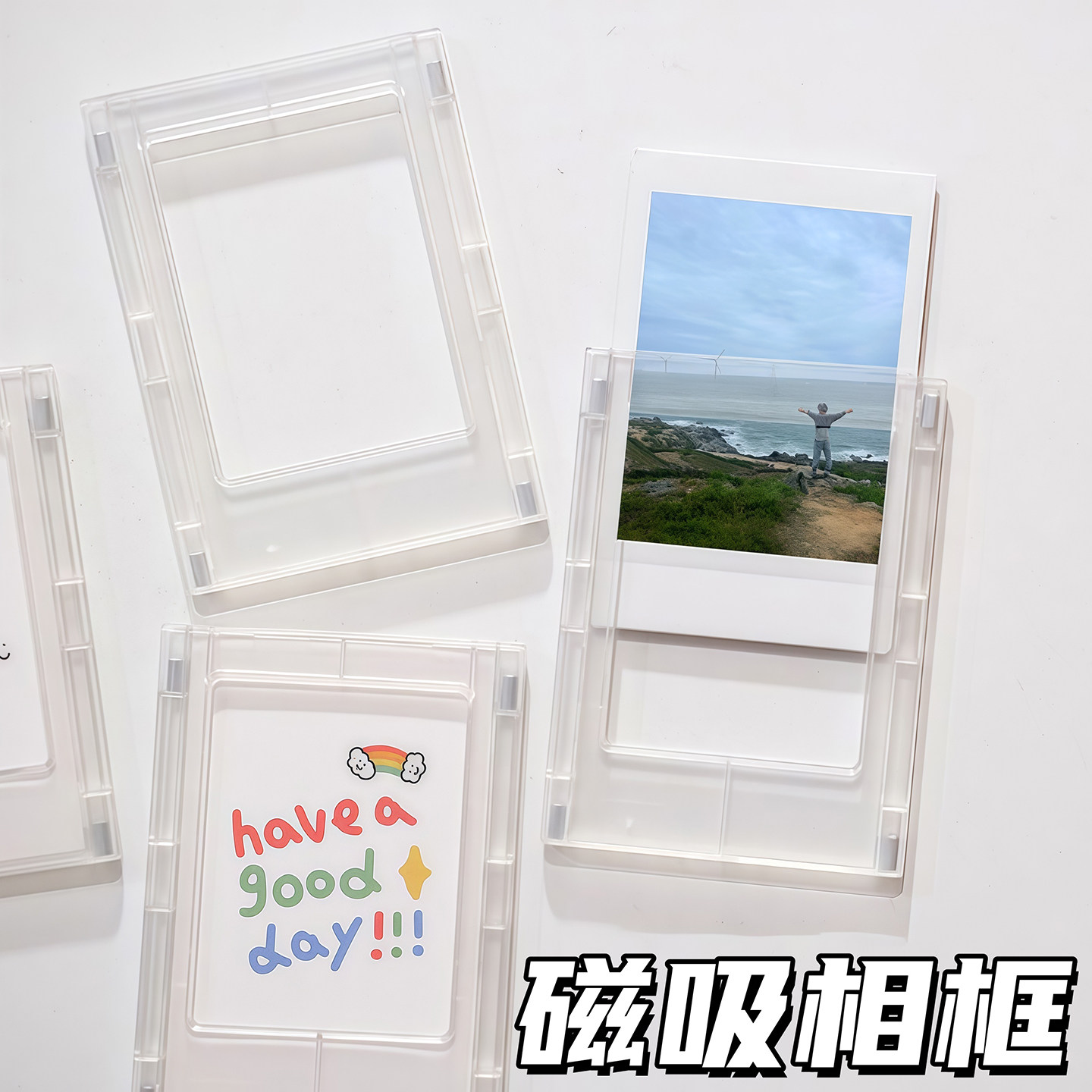 アクリルフォトフレーム 冷蔵庫マグネット ディズニーチケット DIYクリエイティブポラロイド 3インチ小カードディスプレイ 磁気フレームステッカー