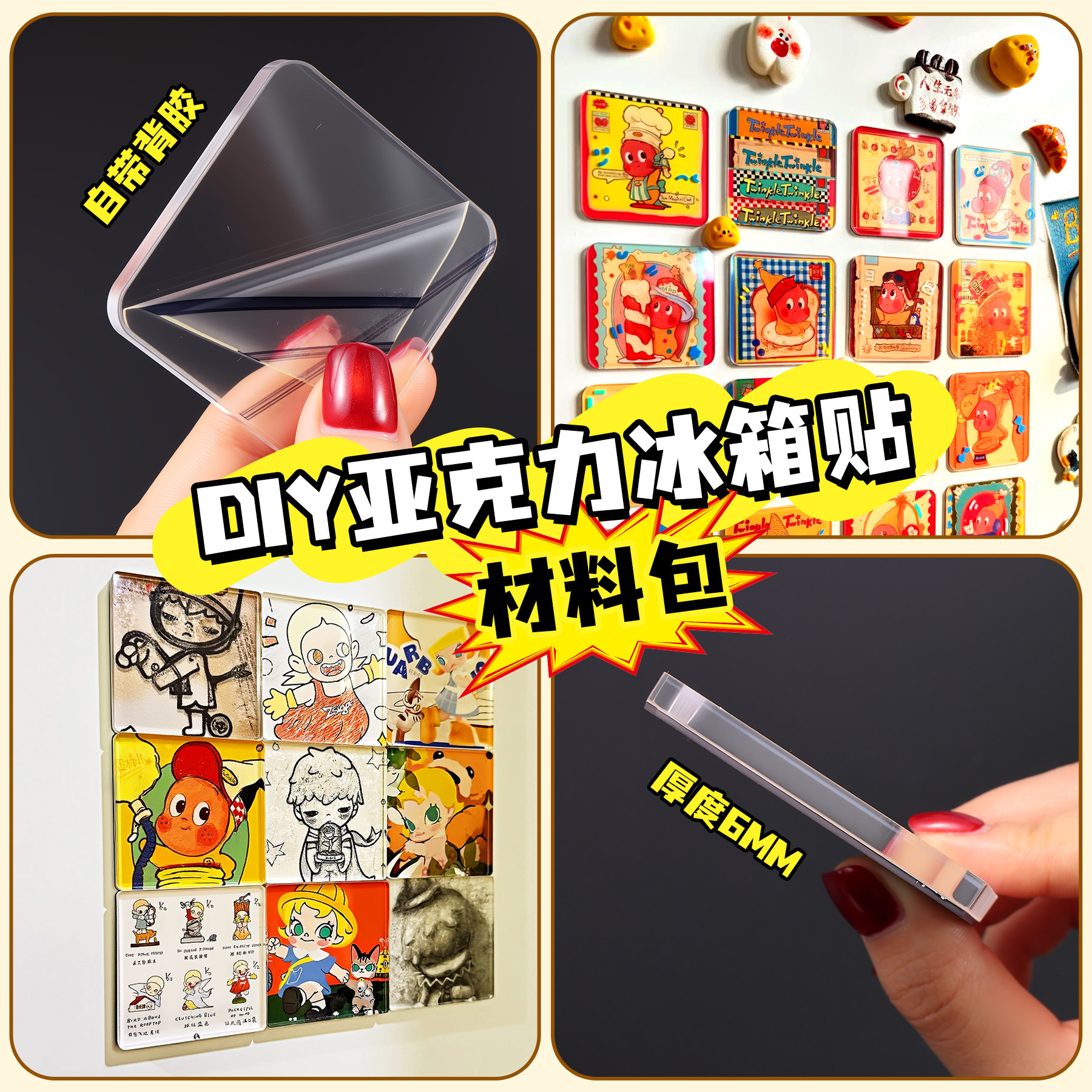 自己接着式アクリル冷蔵庫マグネット DIY素材パック カートゥーンインクリエイティブなスクエア磁気シール 手作り