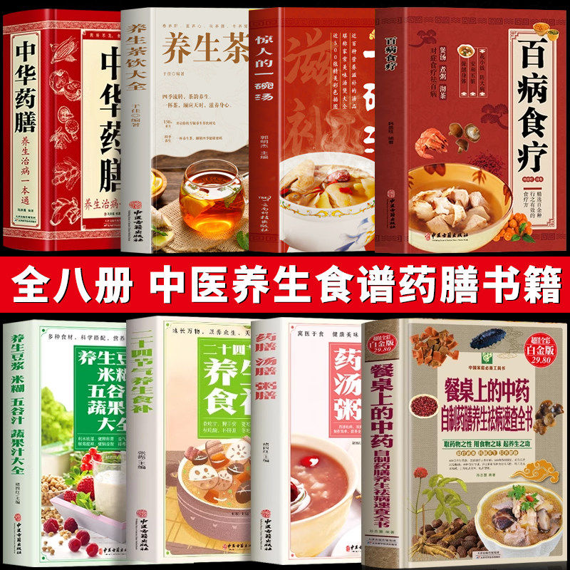 伝統中医補食書全8巻、健康豆乳、米粒、穀物汁、野菜汁、薬用食、スープミール、お粥、二十四日暦、健康食品サプリメント、あらゆる疾病食療法、伝統中国医学の達人による健康スープと健康茶、中国医学食