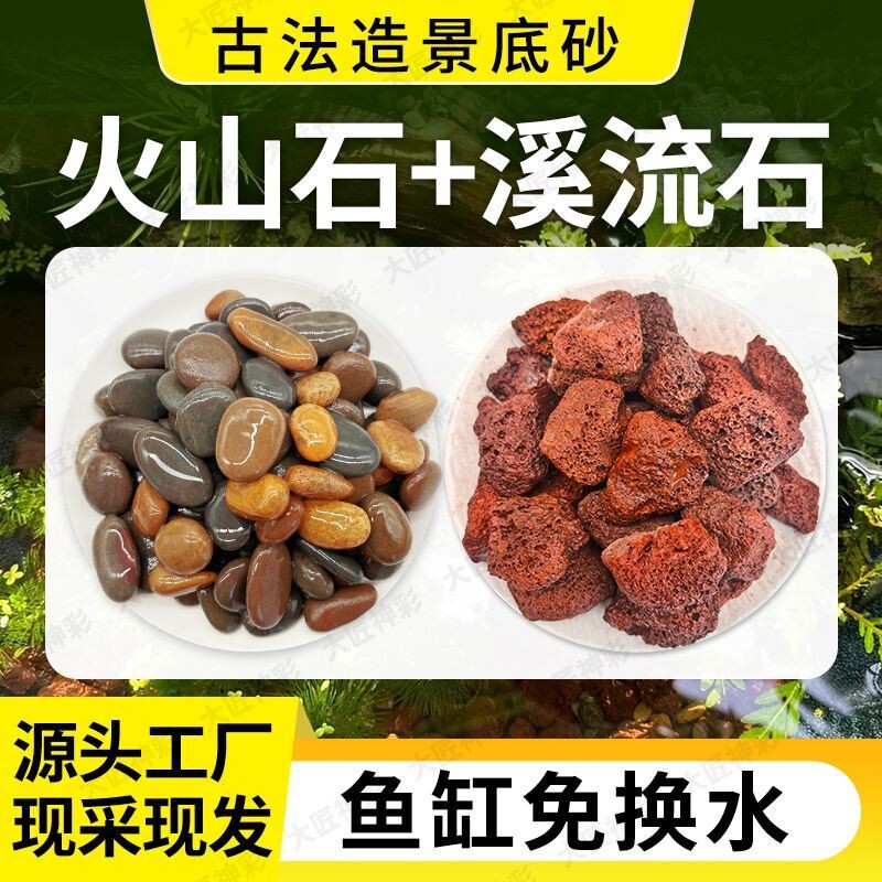 玉華石造りの水槽造園、特別な底砂と火山石の小石、装飾的な色の石、キビの魚の水槽造園