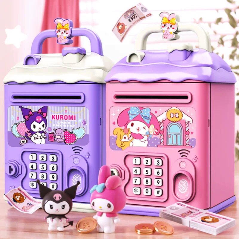 クロミ貯金箱、2025年モデルの子供、男の子・女の子向け、貯蓄式ダイヤルロック金庫の出入りのみ可能です