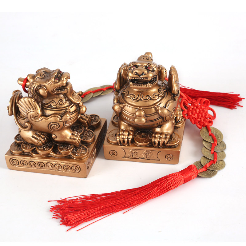 真鍮製のピクシウ・ジャオツ タウンハウスオーナメント 純銅ピシウ 男性と女性のピチュメタルの一角パイ・アルマジロのリビングオーナメントのペア