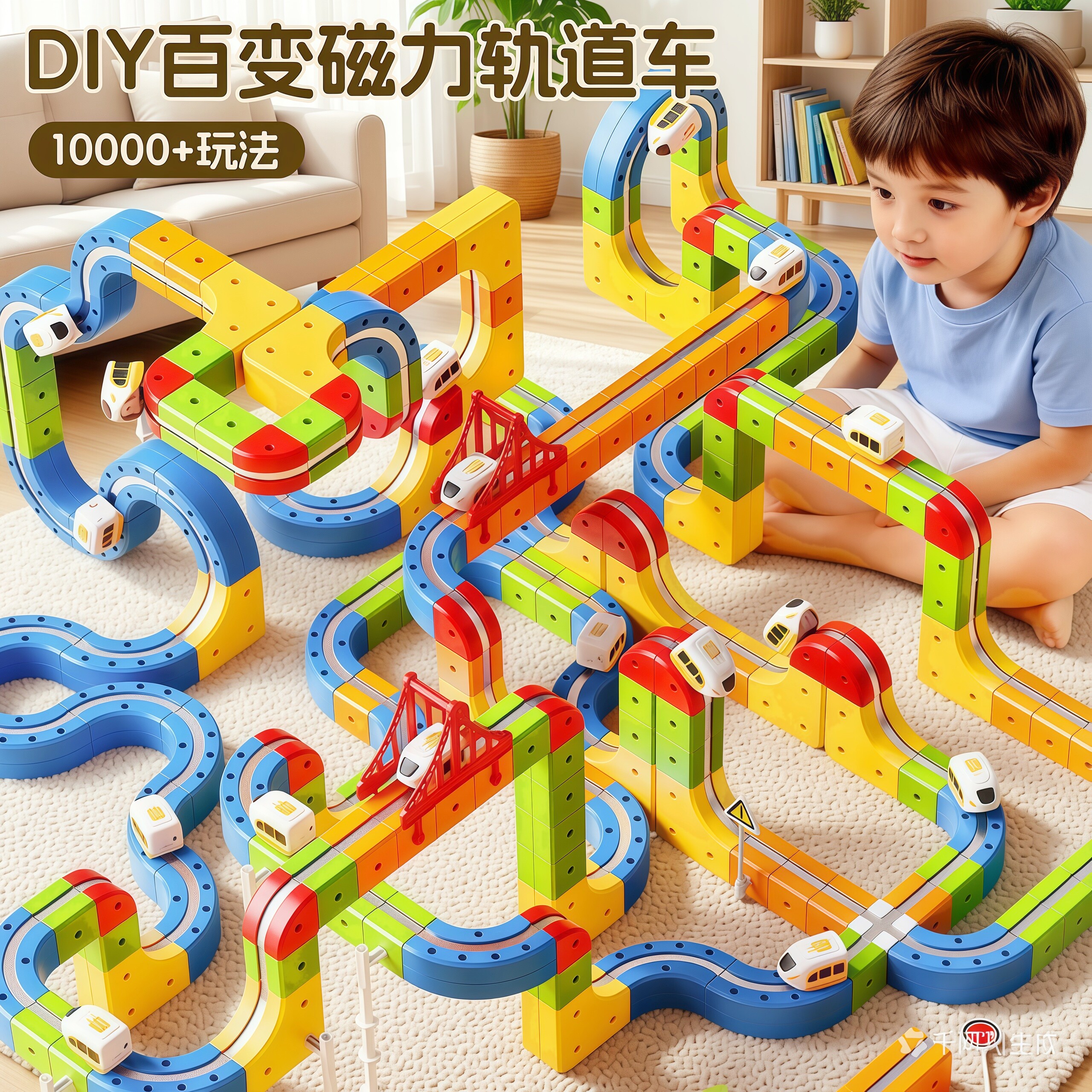 バラエティ マグネットトラック 子供用教育玩具 高速鉄道 DIY ビルディングブロック 少年・女子向けギフト 3つのマグネット電気