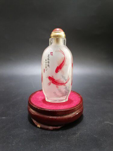 鼻タバコ瓶、古い製品、特徴的な手工芸品、中国式の木工細工、取っ手、外交贈り物、内装画、古い鼻タバコ瓶