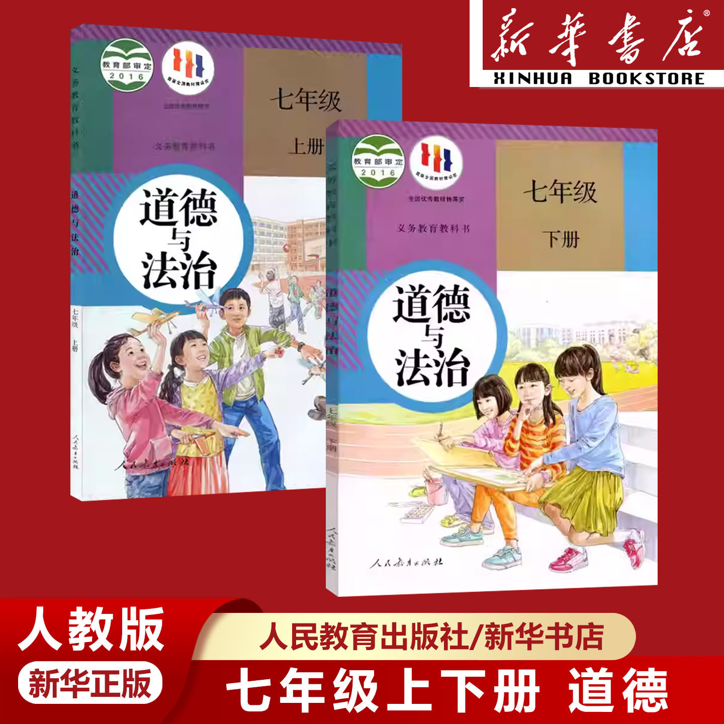 本物無料送料 人民教育版 中学倫理と法の支配 七年生 上・下巻 全セット 教科書2冊 人民教育出版社 人民教育 一年級 道徳全集 7巻 上・下