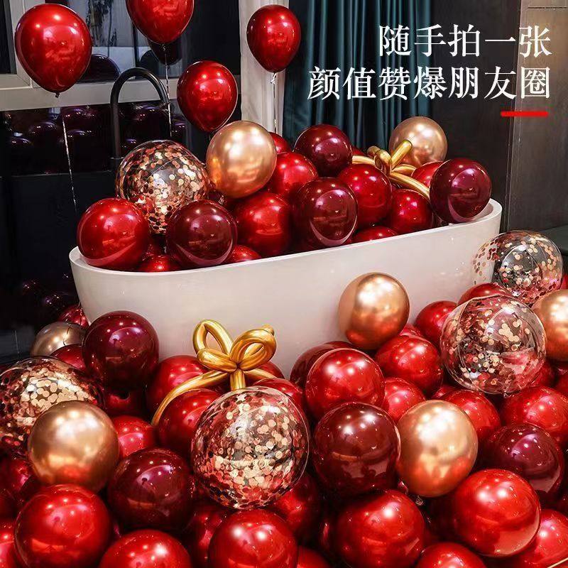 風船装飾 インターネットセレブ結婚式の祝賀室セット 誕生日の飾り付けシーン 厚みのある金属の赤金風船
