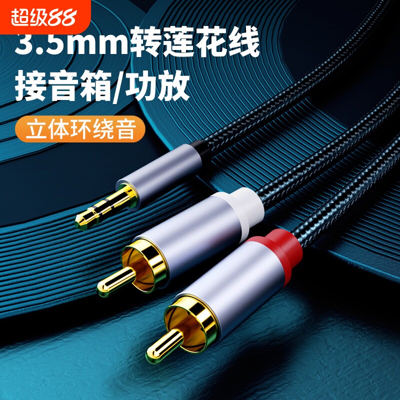 レクソンAUXオーディオケーブル 1/2 3.5mmからダブルロータスヘッド RCA携帯電話接続、コンピュータ接続アンプ、スピーカー、サブウーファー 特殊AUX出力入力、ロータスの赤と白の1〜2プラグ