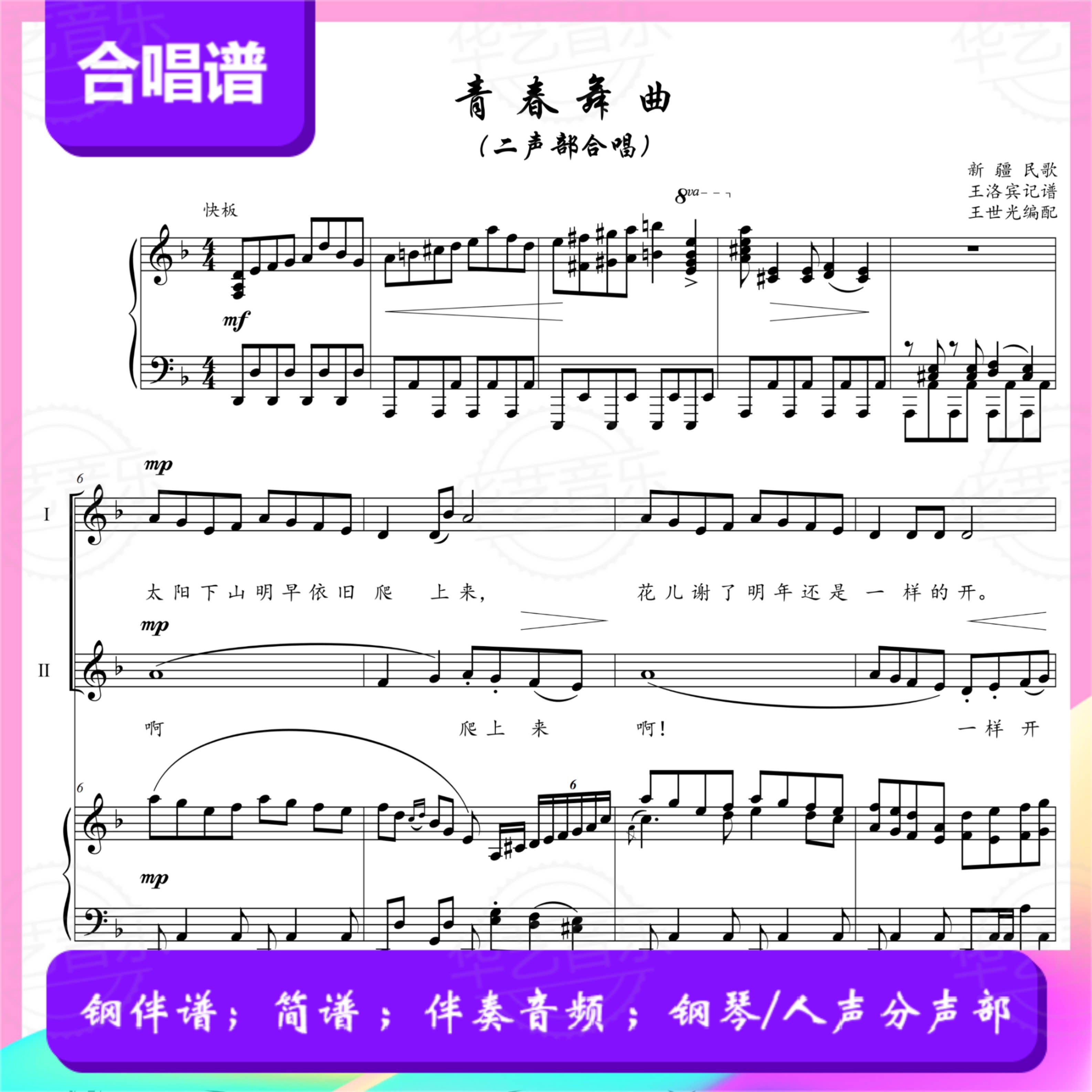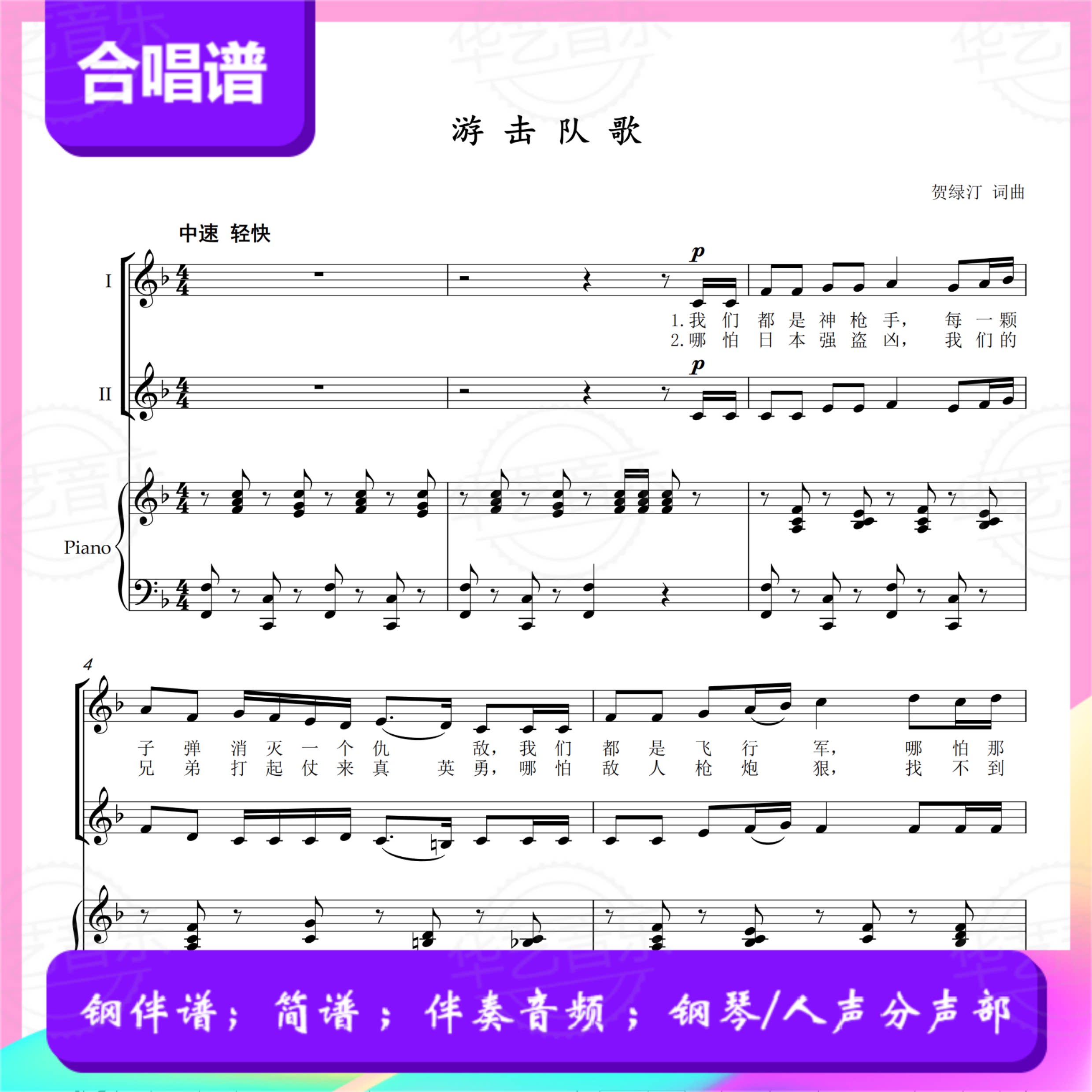 F調のゲリラソング 二部合唱スコア/スタッフピアノ伴奏メインスコア/スティール伴奏音声/ボーカル分割パート