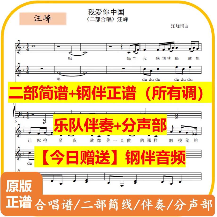 「I Love You China」パート2 コーラス G/F/E ワン・フェン ブリーフスコア メインスコア 伴奏部門[Free Steel Companion]