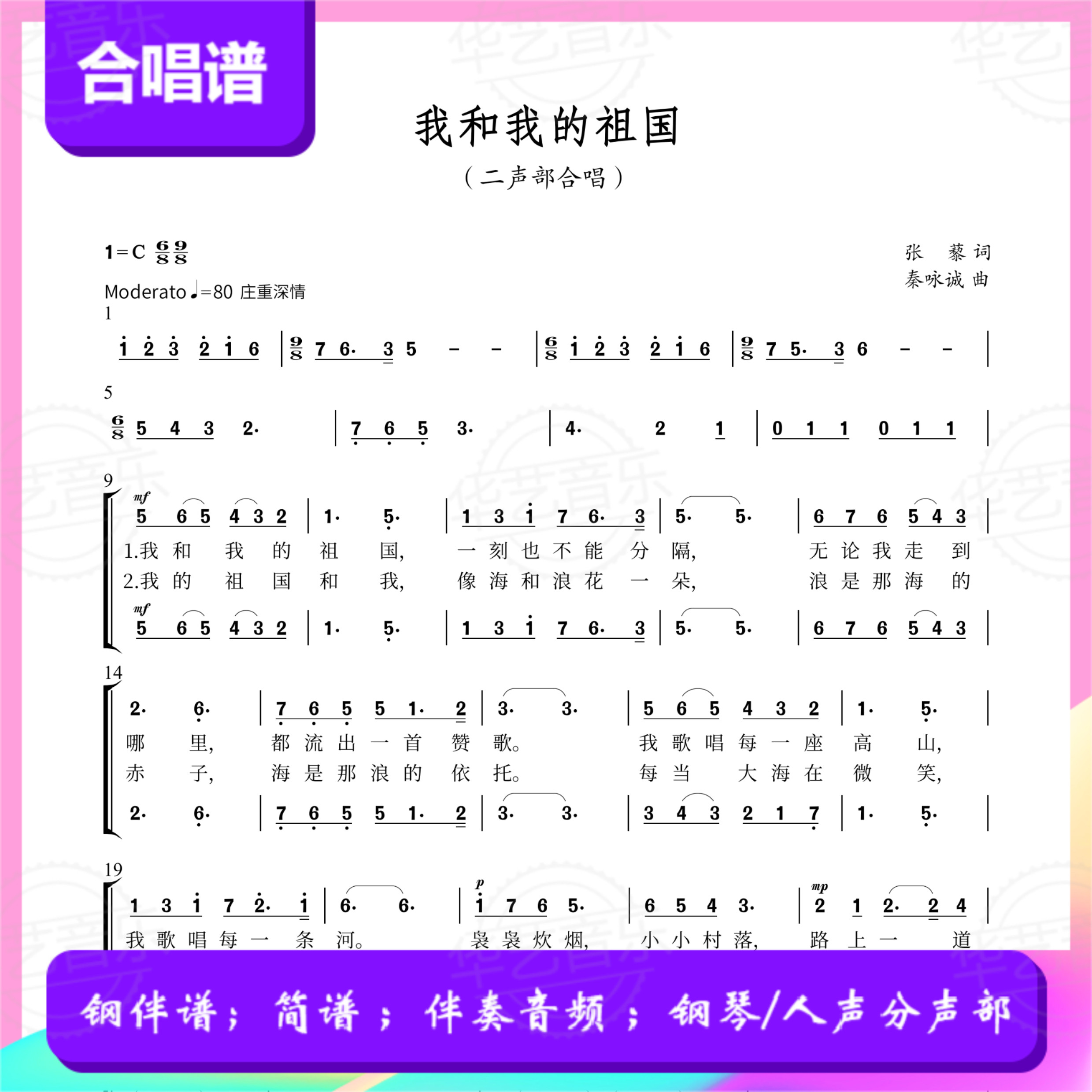 『My Motherland and I』 ハ調第2部合唱 シンプルな楽譜 ピアノ伴奏 スタッフ 音声 ボーカル 別れのデモンストレーション