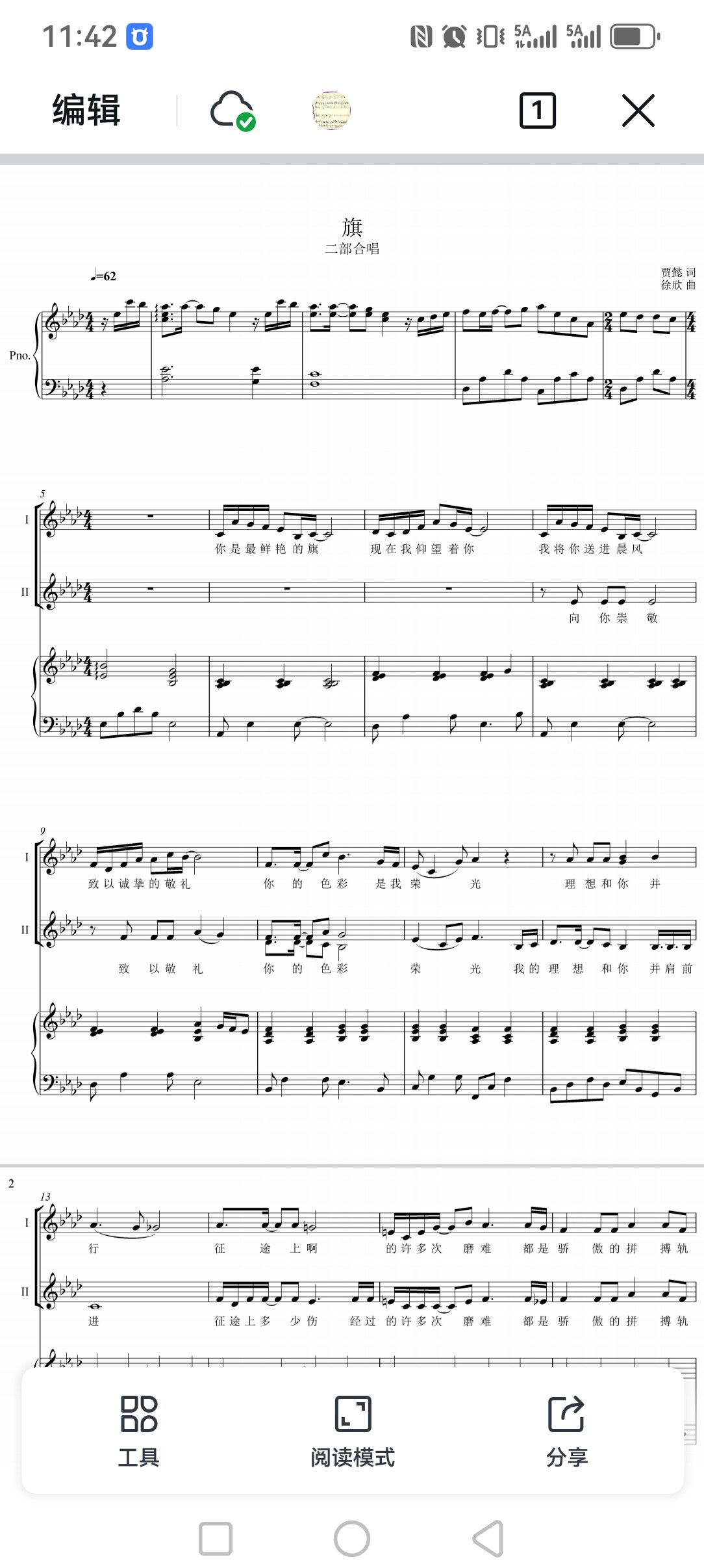 旗、2コーラス、5行スチール伴奏、メインスコア+コーラススコア