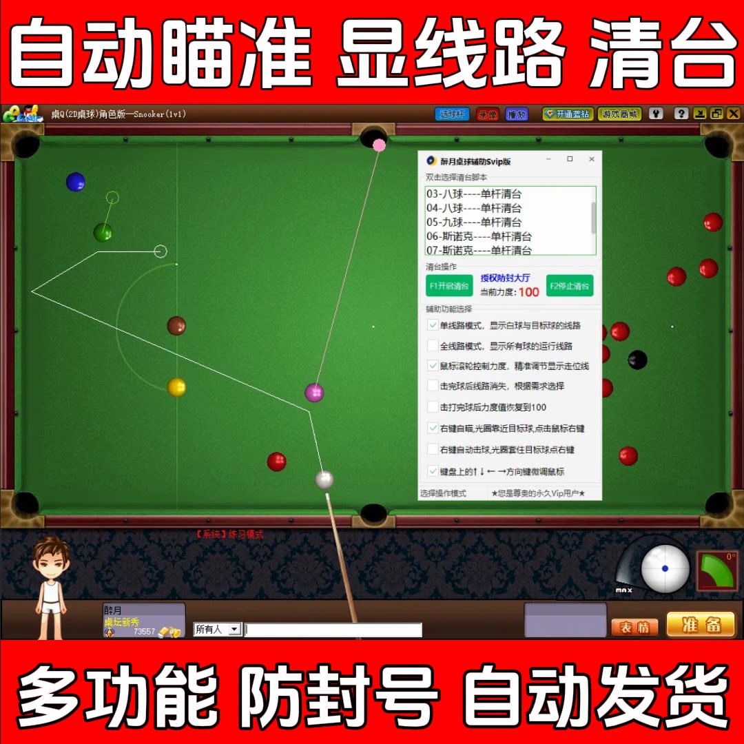 QQゲーム2Dビリヤードサイト、ビリヤード支援ディスプレイトレース、自動照準、ワンストローククリア、100%正確