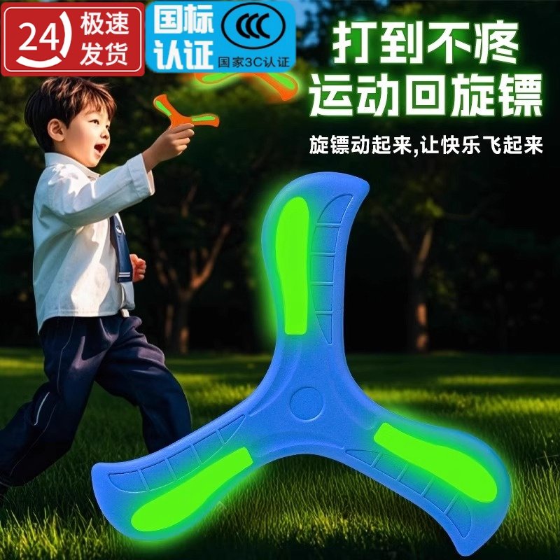 三枚ブレードのブーメラン、子供用フリスビー、回転飛行装置、ブラックテクノロジーの屋外スポーツおもちゃ、ブーメランマーク、ルミナス