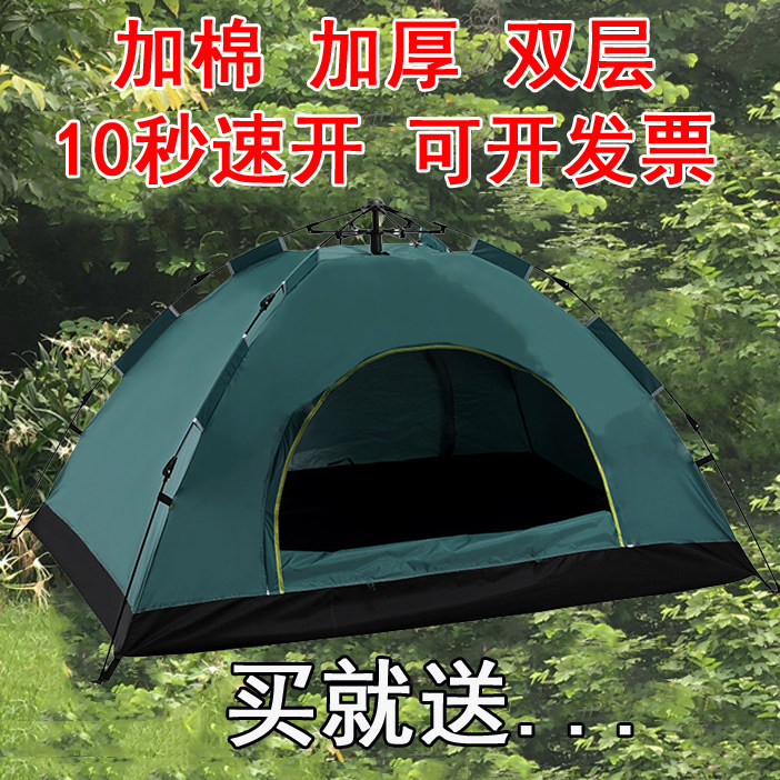 新しいテント迷彩、屋外キャンプ、シングルオートマチック、ダブル厚み付け、1〜2人、新しいキャンプ用ハンドグループ、3〜4人