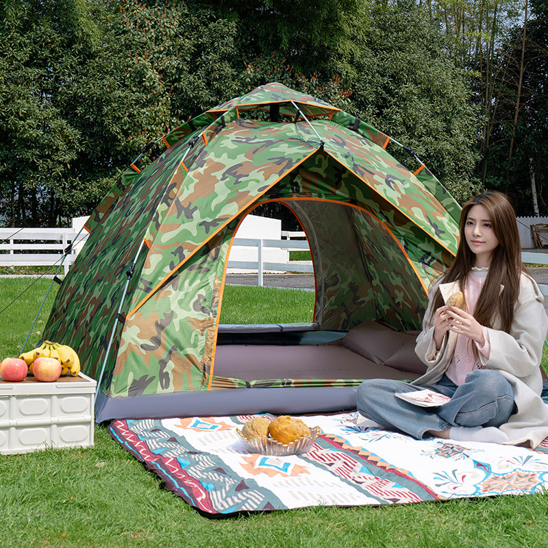 キャンピングポータブル自動クイックオープンテントカモフラージュフリーシングルレインプルーフダブル3-4アウトドアキャンプ新モデル