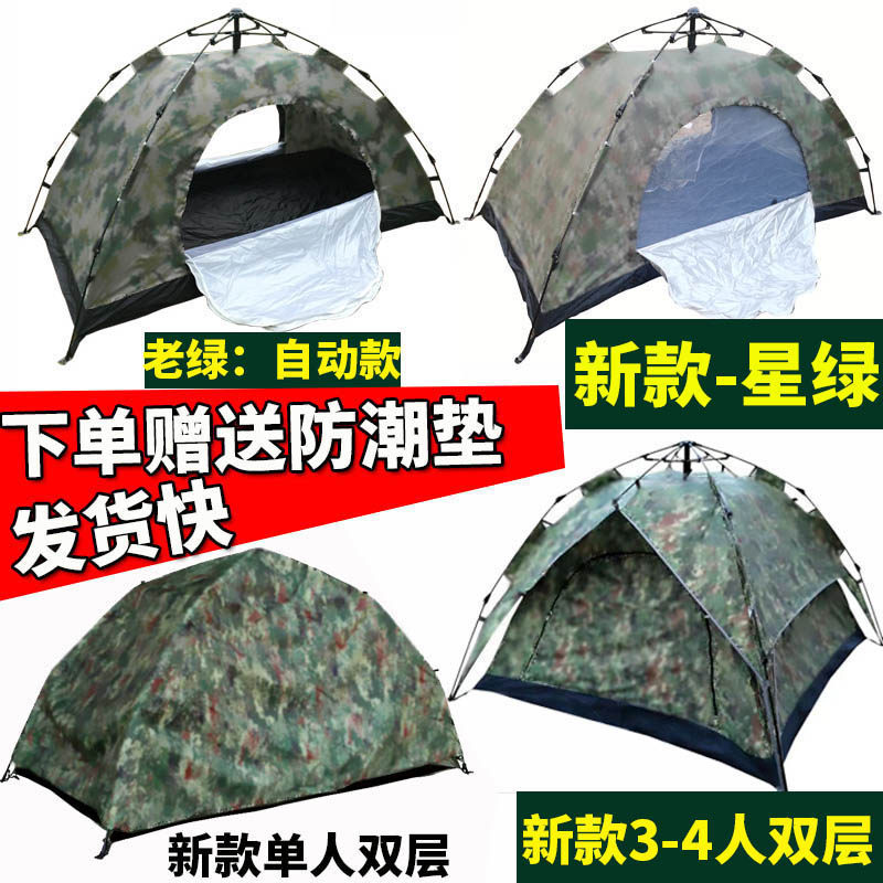新しいテント迷彩、防雨シングルキャンプ、自動ダブルクイックオープニング、3〜4人、1〜2人、屋外軍事訓練