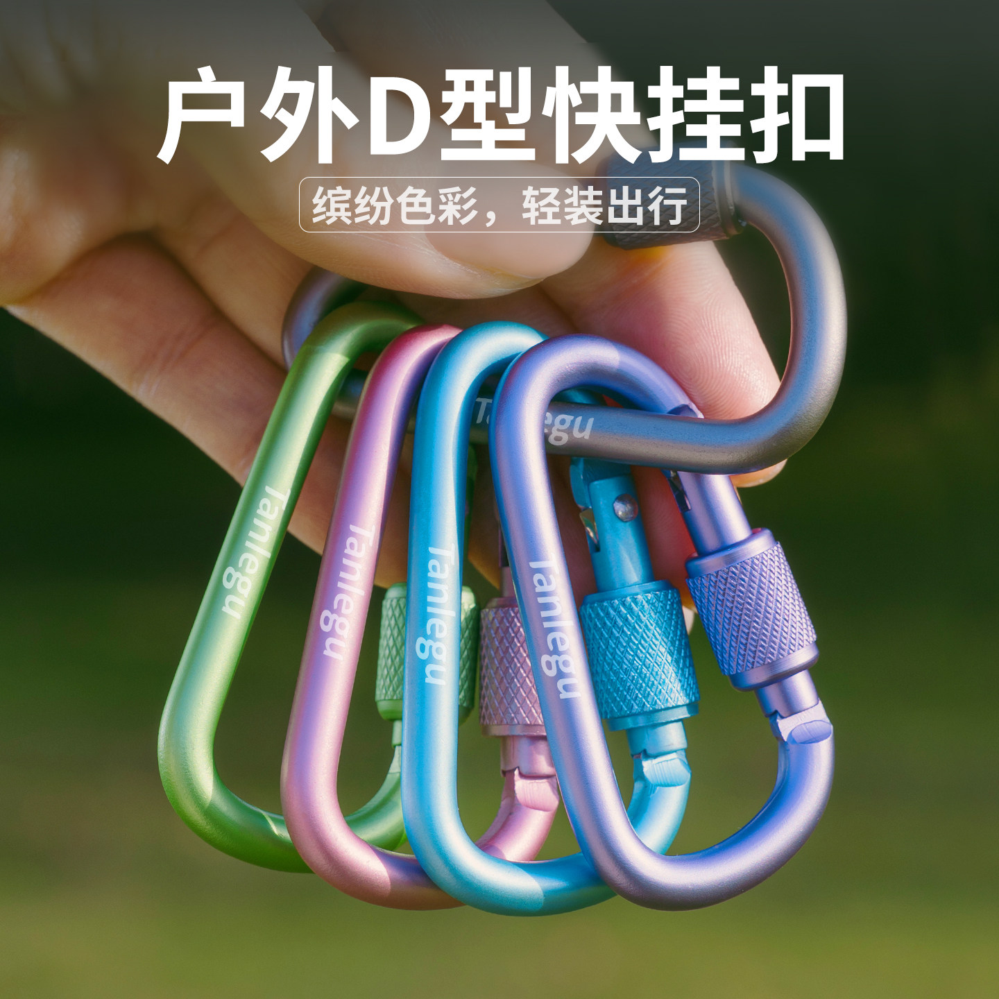 屋外用DタイプクイックフックバックルNo.6アルミ合金カラビナセルフロック多機能ナットロックキーチェーンバックパックアウターフック