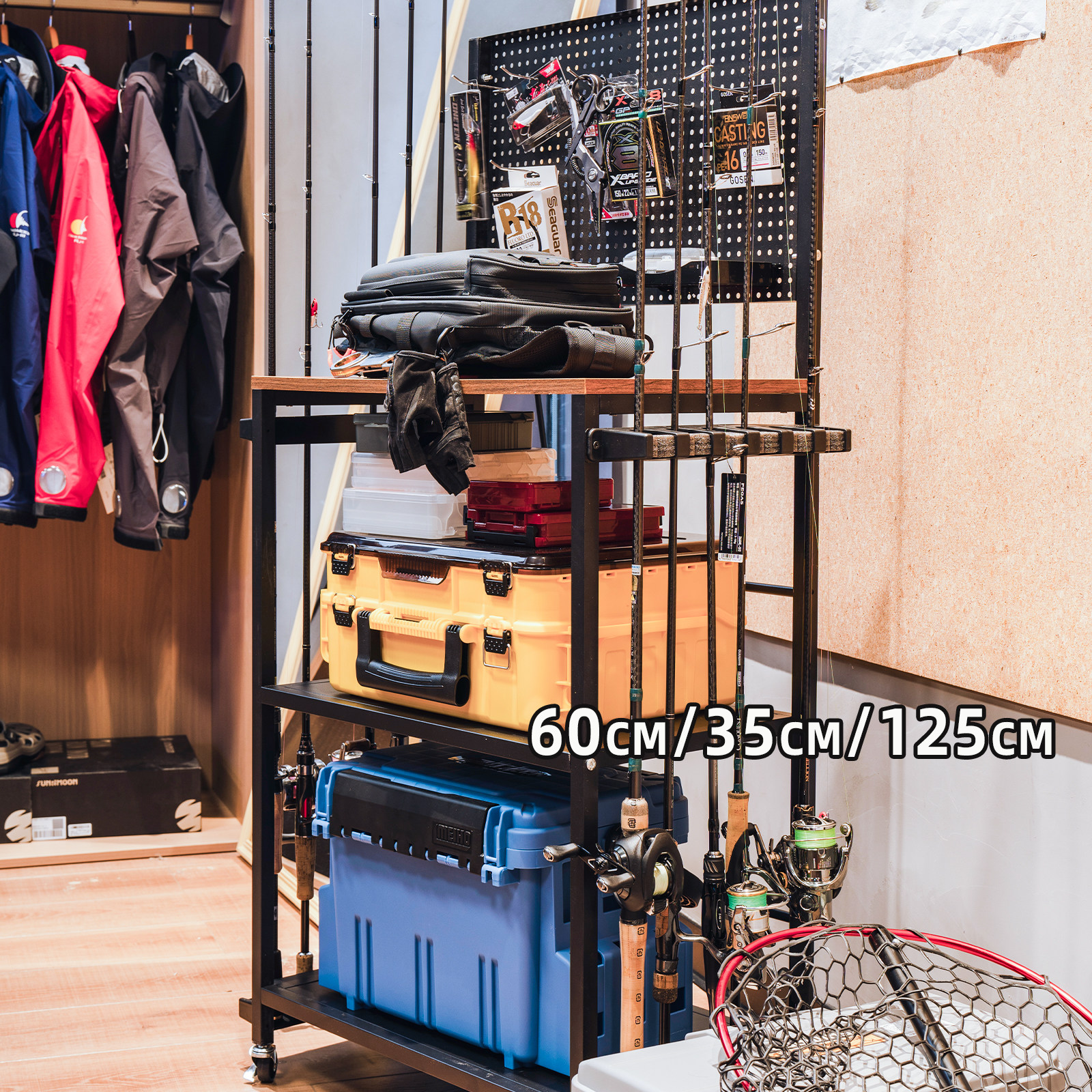 クルーシアンは釣り箱、ルアーロッドラック、釣り竿展示ラック、収納ラック、釣り道具収納ロッドホルダーなどを設置できます