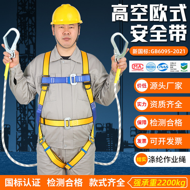 五点式空中作業用安全ベルト、フルセット、ダブルフック、国家標準の全身落下防止安全ロープセット
