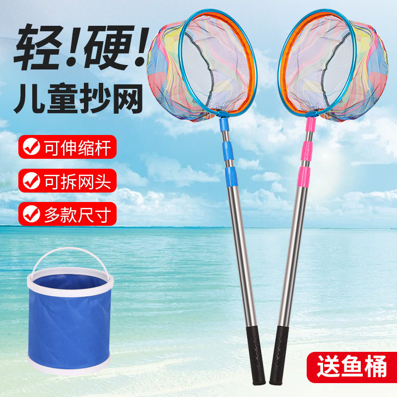 子供用網、超硬望遠式網、釣り網、釣り竿、子供用釣り、小魚、小魚、小エビ、厚みのある漁網ポケットセット