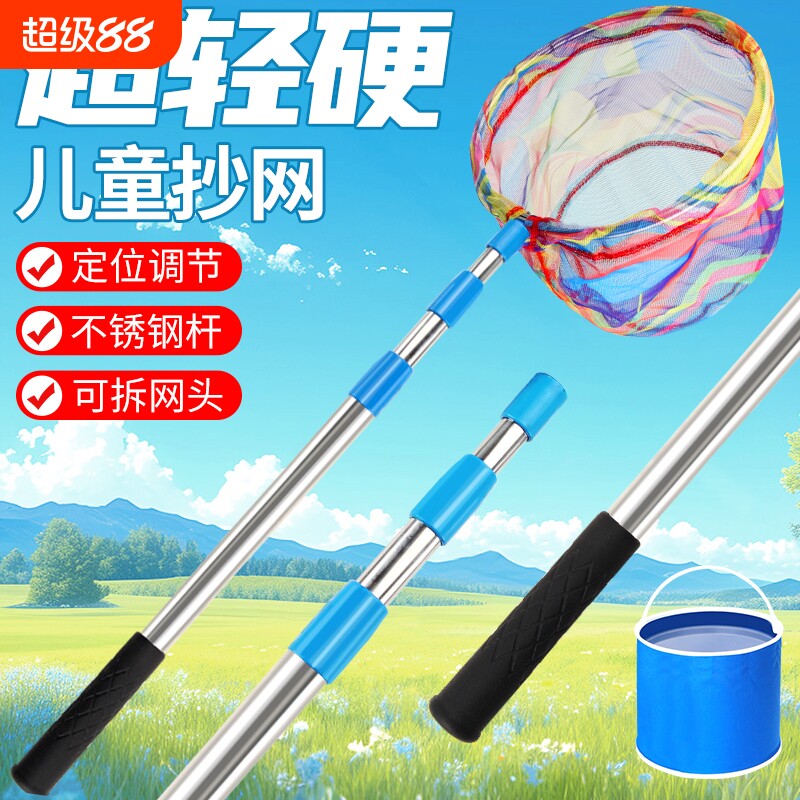 子どもたちの漁網、漁網、昆虫捕り、トンボ捕り、蝶の網、小魚釣り、強力なカーボン伸縮式ロッド釣り