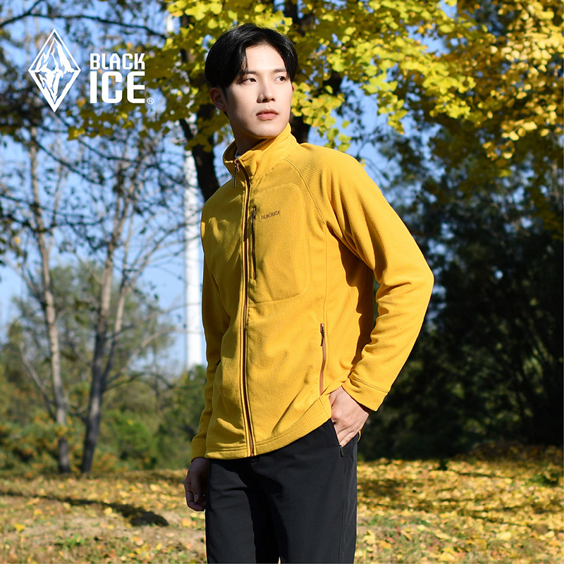 ブラックアイスアウトドアフリースジャケット、ハイキング暖かいスタンドアップカラージャケット、静電気防止ジャケット、ミッドレイヤーライナー、メンズ231102