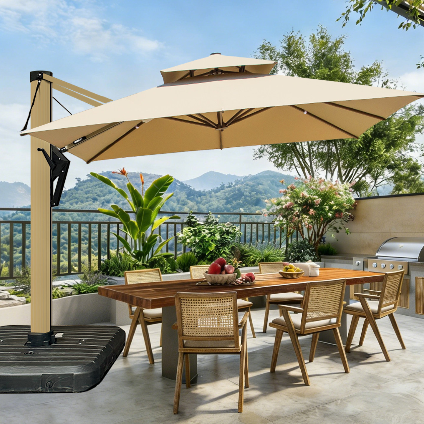 屋外の傘、中庭、傘、テラス、バルコニー、屋外屋台、大きなサンブレラ傘、ヴィラ、庭園、屋外ローマ傘