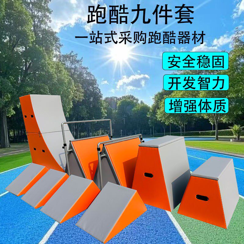 パルクール:幼稚園の青少年用9ピースセット、フル装備、レク、ランニング、体力トレーニング、パルクールコンビネーション三脚