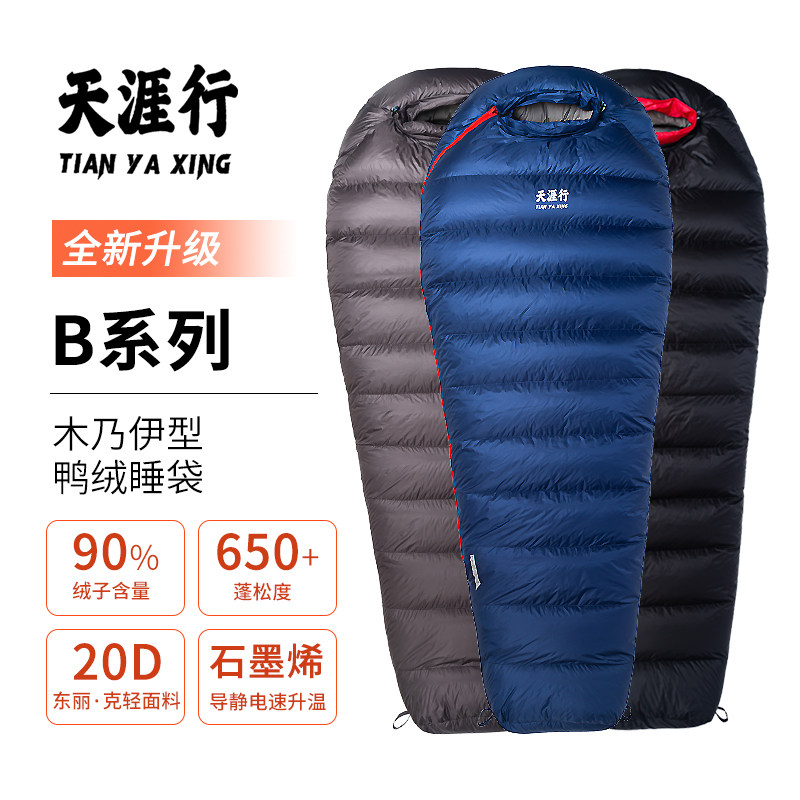 天涯Bシリーズ ミイラ化ダックダウン寝袋 屋外キャンプ 成人用寒さ防護・保温 超軽量ポータブル寝袋