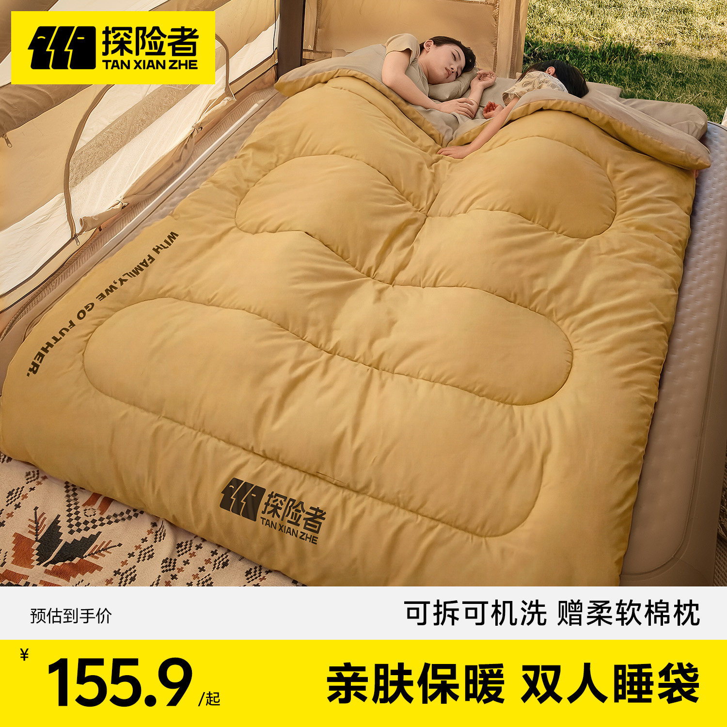 エクスプローラーダブル寝袋 大人用冬用 屋外キャンプ オールシーズンユニバーサルキルト デュアルパーパスカートラベルポータブル