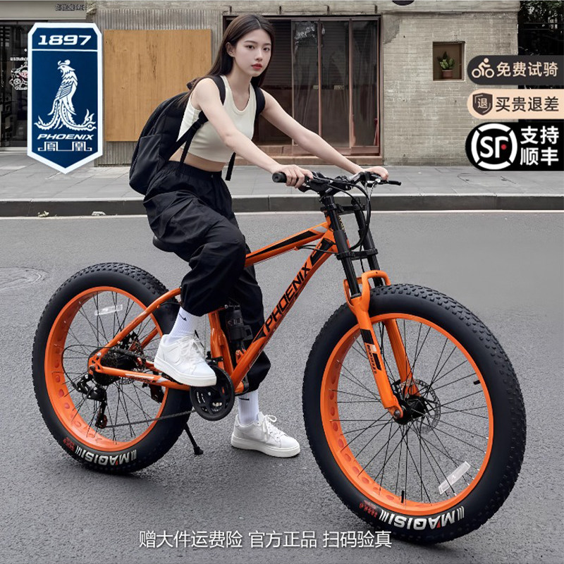 公式フェニックスビーチマウンテンバイクスノーバイク粗いタイヤオーバーサイズショックアブレーブション 男性・女性可変速度オフロードワイドホイール